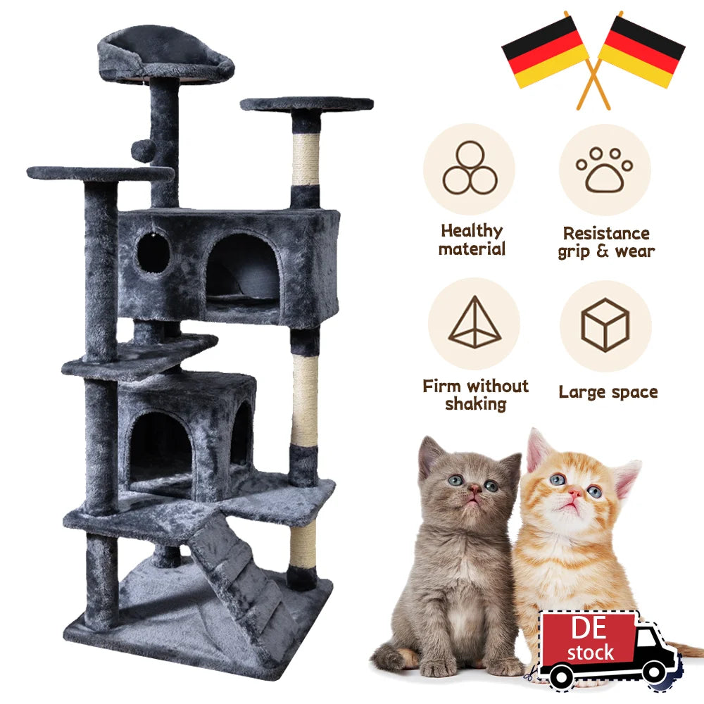 Ten wielopoziomowy drapak to prawdziwe kociego królestwo! Solidna konstrukcja z sizalowymi słupkami zapewnia kotu godziny zabawy, drapania i relaksu na wyściełanych platformach.